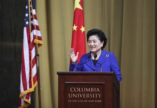 新闻中心讯 当地时间9月26日,作为中美社会和人文对话机制的重要内容,中美大学校长与智库论坛在美国纽约哥伦比亚大学举行,国务院副总理刘延东出席并发表主旨演讲。教育部部长陈宝生、文化部部长雒树刚、国家卫生计生委主任李斌、中国驻美国大使崔天凯、国务院副秘书长江小涓等,美国前国务卿基辛格,以及中美两国约40多所大学校长、智库与企业界代表共计超过200人出席会议。复旦大学党委书记、校务委员会主任焦扬受邀参加论坛,并在议题讨论中作引导发言。