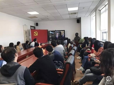 复旦大学全体在校党政领导、教师代表早早地来到逸夫科技楼多功能报告厅,集体收看了见面会的直播。新闻学院、数学科学学院等院系在院内组织了集体观看,更多师生则在实验室、办公室和寝室等见证了这一重要时刻。