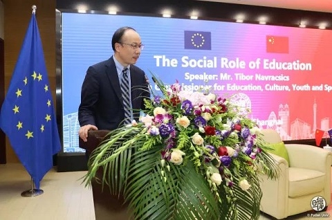 瑙夫劳契奇谈到,复旦大学在中欧教育交流合作中扮演了重要角色,欧盟从2014年开始的伊拉斯莫斯计划,中国是主要的合作伙伴国家,而复旦大学是17所参与的中国大学之一。欧盟的英才教育计划项目,目前已经向515名中国研究人员提供来欧洲进行研究的奖学金,有超过200个欧洲研究员来到中国进行研究,而复旦是他们来中国的前五大教育机构之一。