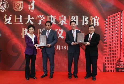 经过最近几年的改扩建,如今的上医校园面貌焕然一新,充满勃勃生机。“高大上”的医科图书馆、医学科研楼、学生公寓楼、综合游泳馆等一系列新设施的建成和启用,打破了以往严重制约发展的空间局限,为未来发展提供了一流的条件保障。11月18日下午,“复星楼”和“康泉图书馆”分别揭牌。两年前,校友创始的企业集团复星为“复星楼”建设和复旦医科人才培养捐赠1亿元,宝龙集团发展有限公司和上海豪盛投资集团有限公司共同为“康泉图书馆”建设捐赠1亿元。