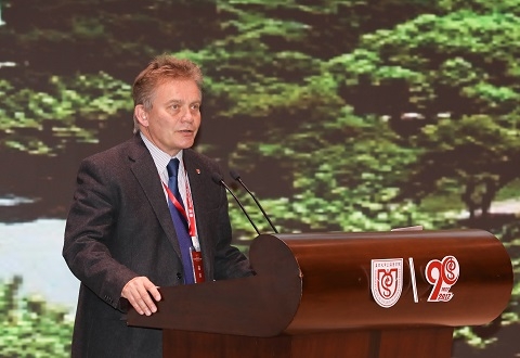 许宁生作主旨报告时指出,九十年来上医精神薪火相传,上医人历来都有家国天下的理想情怀、正谊明道的价值追求和严谨求实的校风学风。过去的九十年,尤其在国家和上海快速发展的近十年里,上医已经为未来发展打下了坚实的基础,积聚了喷发奋进的能量——率先开展医学教育改革,整体学科水平位居国内领先、国际前列;率先主动服务健康中国战略,医疗整体水平和实力处于国内领先、国际先进水平;率先改造建设医学院主院区,为未来发展奠定坚实基础。党的十九大对教育卫生事业发展作出了新的部署,提出了新的要求,为我们的发展指明了方向。在今后十多年,上医要加快建设面向未来的中国特色世界一流医学院,这是国家赋予的使命,是民族复兴的要求,是上医发展的重大机遇,是每一位师生员工共同的光荣和梦想。要率先深化医学教育改革,建设世界一流医学院;率先布局服务健康中国战略,建设强大的复旦上医医疗体系;率先深化医教研融合创新,在上海亚洲医学中心城市建设中发挥引领作用。