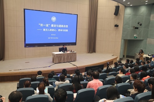 “同学们,你们现在是20到30岁之间,到了2020、2035、2050年,你们的青年时代与壮年时代,正是国家迈向富强民主文明和谐美丽的社会主义现代化强国的时候,你们是可以大有作为的!”12月20日,校长许宁生以“‘双一流’建设与道路自信”为主题向在校学生讲述复旦人的初心、使命与实践,勉励青年学子凝心聚力、乘风破浪,在新时代的大发展之中勇担使命、更创辉煌。