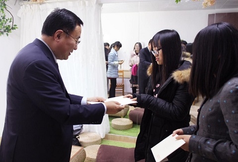 12月29日,校党委副书记许征走进邯郸校区南苑学生生活园区,与来自不同院系的15名本科生代表进行了座谈交流,详细了解了同学们在校期间的学习和生活情况,鼓励大家努力学习,前程似锦,叮嘱同学们在新年之际为家人送去新年的问候。