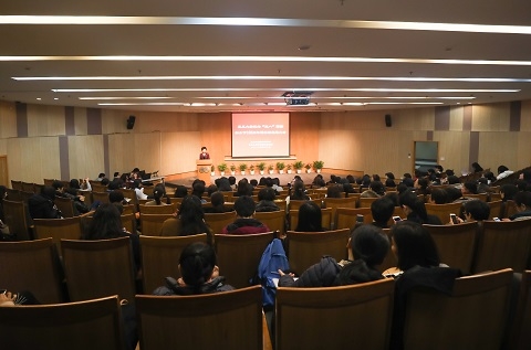 表彰大会结束后,《若初,早安!——漫画乳腺健康》的作者、附属肿瘤医院陈嘉健老师,做了“有关乳腺健康那些事儿”的讲座。陈嘉健用生动风趣的语言、诙谐幽默的图像,让在场聆听讲座的老师们受益匪浅、获益良多。
