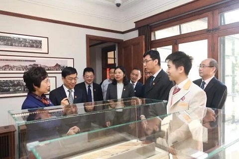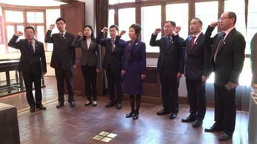 新闻中心讯 “我志愿加入中国共产党……”在马克思诞辰200周年之际,适逢《共产党宣言》发表170周年,同时也是五四运动99周年的重要时刻,为深入学习贯彻习近平总书记重要讲话精神,不忘初心,牢记使命,复旦大学党委常委班子前往刚修缮完成的《共产党宣言》展示馆(陈望道旧居)参观,并集体重温入党誓词,从“信仰的力量”和“真理的光芒”中汲取奋进力量。