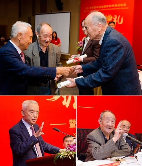 叶世昌教授(左)、王学青教授家属代表(右)发表获奖感言