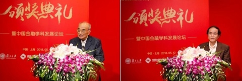 5月12日,由复旦大学、鸿儒金融教育基金会(原刘鸿儒金融教育基金会)和上海财经大学联合主办的2018年度“中国金融学科终身成就奖”颁奖典礼暨中国金融学科发展论坛在复旦大学经济学院大金报告厅举行。200余人共聚一堂,共同庆祝复旦大学叶世昌教授和上海财经大学王学青教授获此殊荣。