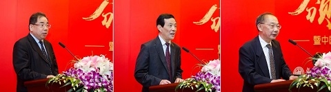 李继熊(左)、曾康霖(中)和吴念鲁(右)致辞