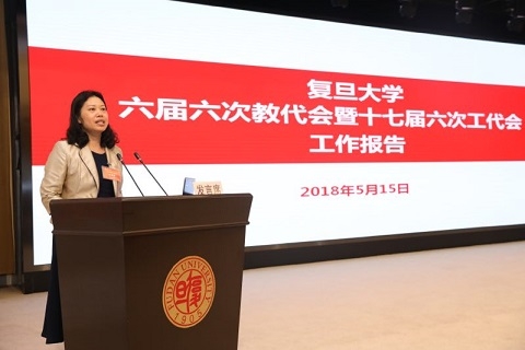 在随后举行的正式会议上,与会代表依次听取了许宁生所作的《学校年度工作报告》,校长助理、财务处处长苟燕楠所作的《学校年度财务工作报告》,校党委副书记、工会主席许征所作的《教代会、工会年度工作报告》,校党委副书记刘承功所作的《复旦大学章程》修订说明。