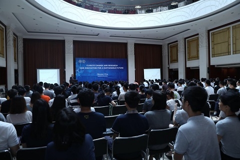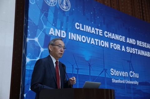 次日,面向来自复旦大学及上海多所高中的数百名师生,朱棣文教授以“气候变化及关于可持续未来的研究和创新”为题,带来一场公众科普讲座。讲座由复旦大学副校长金力主持。将环境问题的发展与演变作为切入点,朱棣文教授向在座听众展示了近年来有关二氧化碳大气层浓度和气候变化的最新数据,并由此延伸至能源话题,介绍了相关领域的快速变化及包括多位中国科学家在内的研究者们所做的重要学术贡献。此外,他还就未来科学、工程技术及学术创新将如何为缔造更加繁荣和可持续发展的世界发挥作用进行了详细阐释。
