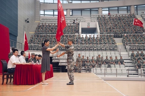 会上,许征向军训各连队授旗。大会最后,全体参训学生高唱校歌,用嘹亮的歌声和热烈的掌声表达争先创优、不甘落后的态度与决心。