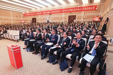 大会强调,办好中国特色世界一流大学,关键在党,关键在人。要坚持把党的政治建设放在首位,坚决维护以习近平同志为核心的党中央权威和集中统一领导;以社会主义核心价值观为引领,加强教师和学生思想政治工作,提升宣传思想工作实效。要以提升组织力为重点,推动基层党建高质量发展。要坚持新时代好干部标准,建设适应中国特色世界一流大学要求的高素质干部队伍。要深化党风廉政建设和党内监督,把全面从严治党向纵深推进。要凝心聚力,积极营造关心支持推进学校发展的良好氛围。