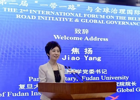 焦扬在致辞中向出席论坛的各位来宾表示热烈欢迎,向为论坛举办提供指导帮助和大力支持的各单位表示衷心感谢。她指出,复旦大学一带一路及全球治理研究院成立一年来,不断汇集优质学科资源,开展全面系统研究,不断加强人才培养合力,以教育沟通民心,不断拓展人文交流合作,搭建互动共融平台,在高校服务“一带一路”建设和全球治理方面开展了一些积极有益的探索。