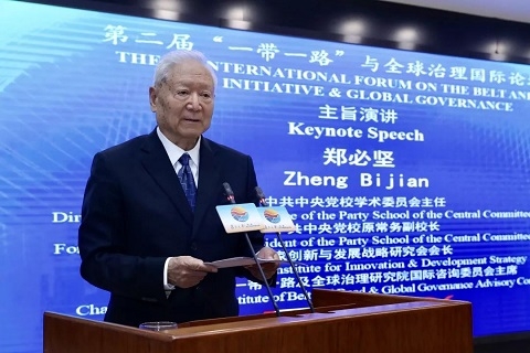 中央党校学术委员会主任、原常务副校长,国家创新与发展战略研究会会长郑必坚以《“一带一路”和中国新机遇》为题发表主旨演讲,从“中美关系和中国新机遇” “‘一带一路’和中国新开放战略” “‘一带一路’和新一轮经济全球化大趋势”三个方面深刻论述了中国在新形势下的历史机遇。