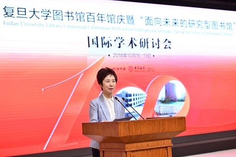 2018年,复旦大学图书馆迎来建馆一百周年。10月17日上午,复旦大学图书馆举办百年馆庆暨“面向未来的研究型图书馆”国际学术研讨会。复旦大学党委书记焦扬、陈毅元帅长子陈昊苏、陈毅元帅女儿丛军、复旦大学党委副书记刘承功等出席活动。北京大学图书馆馆长陈建龙和北卡大学教堂山分校图书馆馆长韦依兰在会上致辞。