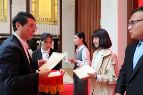 复旦大学党委副书记刘承功出席论坛第五届治国理政大学生交流论坛开幕式并致辞。本次征文活动共评选出11篇一等奖优秀论文与10篇二等奖优秀论文。开幕式上,中共上海市委党史研究室主任徐建刚、教育部《思想理论教育导刊》编辑陈娟为一等奖优秀论文的作者颁发证书;复旦大学马克思主义学院常务副院长李冉为二等奖优秀论文的作者颁发证书。
