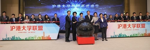 11月6日上午,“沪港大学联盟”在复旦大学成立。香港特别行政区行政长官林郑月娥、教育部副部长田学军、上海市人民政府副市长翁铁慧、中央人民政府驻香港特别行政区联络办公室副主任仇鸿出席仪式并致辞,向联盟的成立表示祝贺,并希望联盟有效深化两地大学在教学、研究、科技成果转化、学生交流等方面的合作,为两地提供高水平的教育和科技支撑,为沪港两地、长江经济带、粤港澳大湾区的发展和国家重大战略的实施作出贡献。