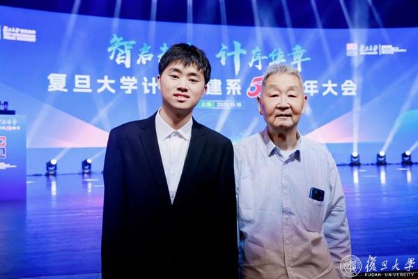 复旦大学计算机系建系50周年大会上,马炜杰和吴立德教授合影