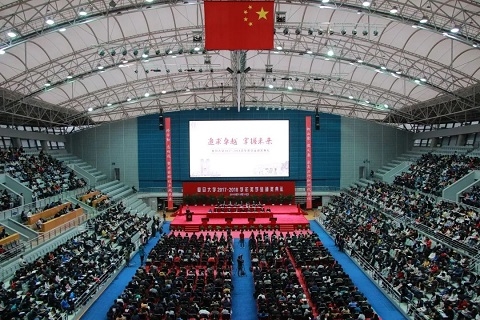 12月11日下午,复旦大学2017-2018学年奖学金颁奖典礼在正大体育馆举行。复旦大学党委副书记、校奖(助)学金评审委员会主任尹冬梅,副校长张人禾、徐雷,校奖(助)学金评审委员会委员,部分冠名奖学金设奖单位嘉宾和学校各院系、部处负责人与3000多名获奖学生代表齐聚一堂,共同见证这一光荣时刻。