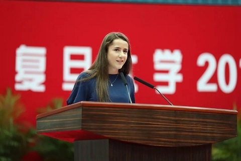 来自斯洛伐克的中国语言文学系研究生浦晓莉也作为获奖学生代表进行了分享。从对汉语言文字的求索钻研,到对中国文化的喜爱,到融入中国当地的社会生活,得益于亲人的鼓励、师长的指导,还有国家和学校的支持,来到中国,来到复旦,她的世界越来越大。