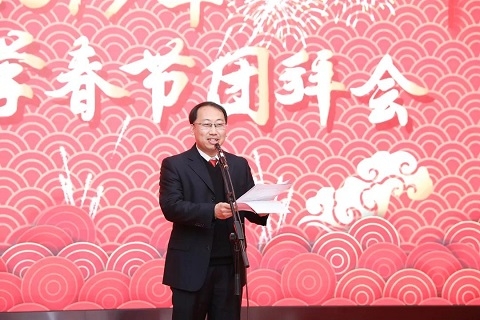 校长许宁生主持团拜会。他向全校广大教师、干部、职工和学生表示亲切的问候和良好的祝愿,向老领导、老教师、老同志们致以诚挚的慰问和崇高的敬意,向为学校事业发展付出心血和智慧的复旦全体师生员工,向长期支持复旦大学事业发展的海内外校友和各界朋友表示衷心感谢。他说,新的一年,让我们更加紧密地团结在以习近平同志为核心的党中央周围,继续保持奋发有为、昂扬奋进的工作状态,继续坚持脚踏实地、求真务实的工作作风,继续发扬敢闯敢拼、乐于奉献的工作精神,加快建设中国特色世界一流大学步伐,共同创造复旦更加美好的明天!