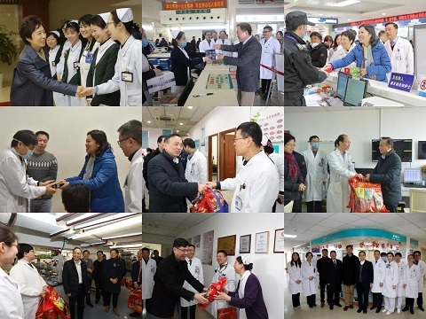 新春佳节即将来临,1月28日至2月2日,校党委书记焦扬来到附属中山医院、华山医院、肿瘤医院、妇产科医院、儿科医院、眼耳鼻喉科医院和华东医院,向临床一线医务人员提前送去新春问候,常务副校长、上海医学院院长兼党工委书记桂永浩一同参加慰问。桂永浩,校党委副书记许征、袁正宏、刘承功还分别来到附属金山医院、上海市第五人民医院、公共卫生临床中心、浦东医院、静安区中心医院、闵行医院、青浦区中心医院(筹)、口腔医院(筹)慰问。各附属医院党政领导和有关职能部处负责人陪同慰问。