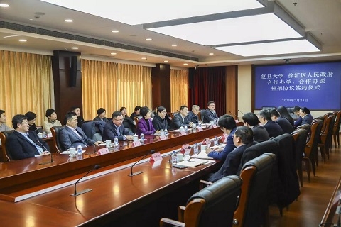 2019年2月24日,复旦大学与徐汇区人民政府合作办学、合作办医框架协议签约仪式在徐汇区政府大楼举行。复旦大学党委书记焦扬,校长许宁生,徐汇区委书记鲍炳章,区委副书记、区长方世忠等区校领导出席签约仪式。