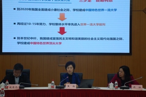 焦扬在校情通报中回顾了2018年学校重点工作,介绍了2019年党政工作要点。她说,2018年学校全面贯彻党的十九大和全国教育大会精神,以习近平新时代中国特色社会主义思想为指导,坚持和加强党的全面领导,紧紧围绕立德树人根本任务,全面落实“双一流”建设方案,学校各项事业发展迈上新台阶。召开了第十五次党代会,明确了学校从跻身世界一流、到世界一流前列再到世界顶尖的“三步走”战略构想,发出了“立德树人固根本,改革开放再出发”的豪迈宣言,开启了中国特色世界顶尖大学建设的新征程。在谈到今年学校重点工作时,焦扬表示,2019年是新中国成立70周年,是决胜全面建成小康社会、实现第一个百年奋斗目标的关键之年,也是学校贯彻第十五次党代会精神的开局之年、建成中国特色世界一流大学的攻坚之年。做好今年工作,必须深入学习贯彻习近平新时代中国特色社会主义思想,认真落实全国教育大会和学校第十五次党代会各项决策部署,坚持攻坚克难、改革创新,奋进担当、狠抓落实,防范风险、稳中求进,以优异成绩庆祝新中国成立70周年。