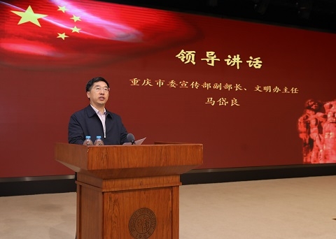 当天下午,朱军还做了一场有关红岩精神的宣讲报告。