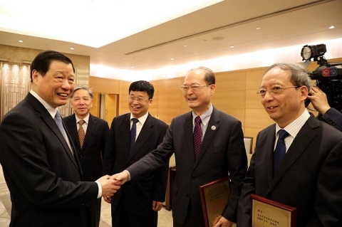 应勇向黄国英教授(右二)、潘柏申教授(右一)表示祝贺