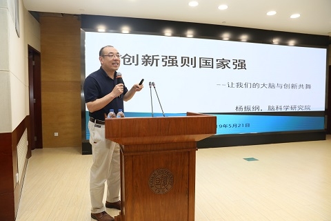 杨振纲带来了“创新强则国家强——让我们的大脑与创新共舞”主题演讲,他先后获教育部长江学者特聘教授、国家杰出青年基金、张香桐神经科学青年科学家、上海市优秀学术带头人计划等荣誉称号。主要研究神经干细胞和脑发育的基因调控网络。近年来主要阐明灵长类大脑皮质抑制性中间神经元发育的基本规律;发现成年人脑内几乎没有神经干细胞和新生神经元;阐述纹状体和嗅球发育的关键基因调控网络等。