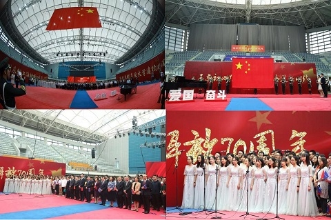 今天是上海解放70周年纪念日,也是复旦大学建校114周年纪念日,学校隆重举行“不忘初心跟党走,砥砺奋进新时代”复旦大学建校114周年升旗仪式,缅怀为上海解放而英勇牺牲的革命先烈,追忆为复旦的创办、建设、发展和壮大作出卓越贡献的先贤们,表达新时代复旦人为加快建设中国特色世界顶尖大学不懈奋斗的坚定决心。校党委书记焦扬、校长许宁生等学校党政领导、教师代表、校友代表和各院系同学齐聚正大体育馆,共庆上海解放70周年,共祝复旦114周岁生日快乐。
