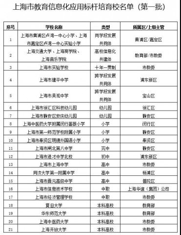 据介绍,上海市教育信息化应用标杆学校创建工作是上海市教委为贯彻全国教育大会精神,进一步深化上海教育综合改革,全面落实教育部和上海市教育信息化2.0行动计划的有关要求,探索信息时代背景下面向未来的新型学校改革试点,加快实现上海教育现代化的一项重要工程。通过教育信息化应用标杆学校创建工作,在全市率先建成一批服务学生个性化发展、具有先进教育理念和现代化治理体系的新型学校。