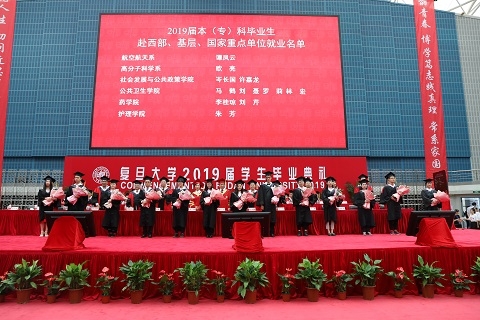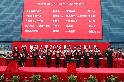 一届又一届优秀学子也点亮了百年复旦的星空。复旦最亮的星,正是那些脚踏实地、锤炼本领,矢志奋斗、放眼未来,超越小我、心系祖国人民的星。校党委副书记尹冬梅宣读2019年度上海市普通高等学校优秀毕业生名单和2019届“毕业生之星”名单,主席台嘉宾为他们颁发证书。
