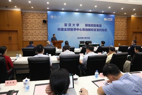 7月15日,复旦大学、绿地控股集团有限公司合作框架协议签约仪式在复旦大学逸夫科技楼举行。