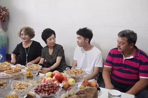 离开喀什地区第二人民医院,穿过老城街巷,焦扬一行来到市区石榴转盘居民区,走访看望了复旦维吾尔族学生代表依里扎提·麦麦提和他的家人。依里扎提是基础医学院临床医学(五年制)专业学生,他受惠于国家民族政策,从内地新疆班考入复旦大学。他在学校表现优秀,进步明显,积极参加公益活动,受到老师和同学们的肯定。焦扬勉励依里扎提坚定信心和目标,继续刻苦学习、不断进步,学成后回到新疆,报答父母、回报家乡、服务国家和人民。