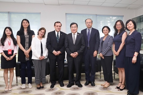 9月5日,智利天主教大学校长Ignacio Sánchez教授一行访问复旦大学,许宁生校长亲切会见Ignacio Sánchez校长一行,副校长陈志敏,外事处、发展研究院有关负责同志陪同会见。