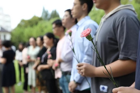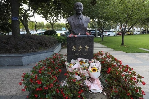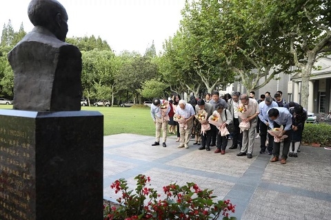 会后,全体与会人员移步至苏步青塑像前,向苏老塑像敬献鲜花,鞠躬致敬。