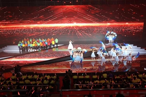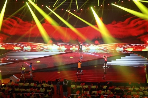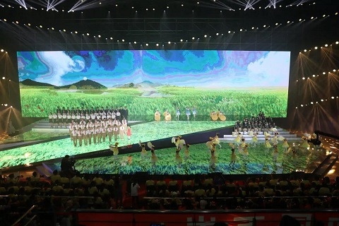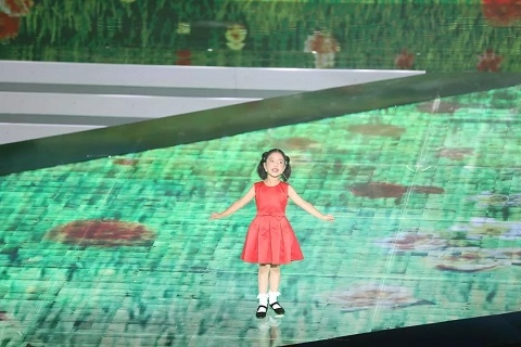 本次歌会的舞美效果体现了科技与艺术的交融,35米宽、8.5米高的屏幕竖立在正大体育馆中央,屏幕下方连接着400多块LED屏组成的地屏,为现场观众提供浸入式的观看体验。在歌曲《春天的故事》和《走进新时代》的改编独唱节目中,陈寅走上舞台一展歌喉,她身着的一袭白裙暗藏玄机。得益于先进的技术和精准的操控,演唱过程中,裙身开出的花朵与大屏和地屏无缝衔接,声景交融,如梦如幻,成为本场歌会的一抹亮色。