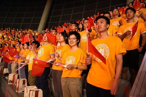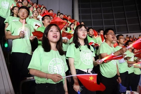 经济学院的吕一伟是主动报名来到歌会现场的,他坦言,拉歌是唤起他爱国意识的一个重要环节,“和这么多同学、老师一起庆祝共和国70华诞,共同制造了一场刻骨铭心的记忆!”