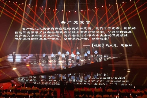 复旦元素与爱国元素相融是这场歌会的一大亮点。由哲学学院教授郑召利带领复旦剧社学生朗诵的《共产党宣言》拉开了全场演出的序幕。复旦大学老校长陈望道是《共产党宣言》第一个中文全译本的翻译者,以他为原型创作的舞蹈《望道》以直抵人心的力量赢得了现场雷鸣般的掌声。