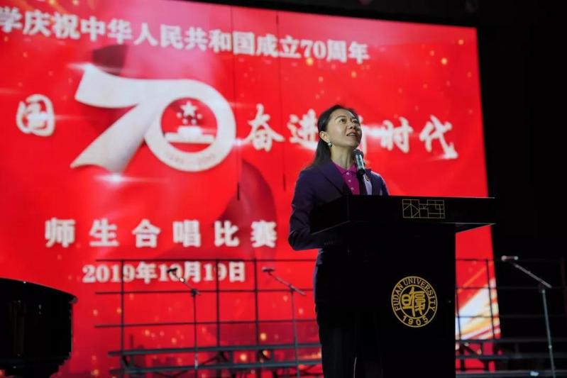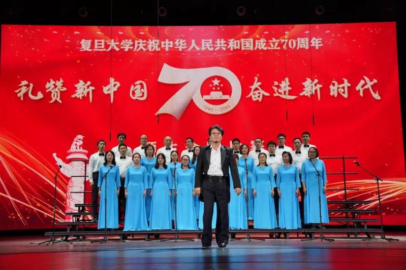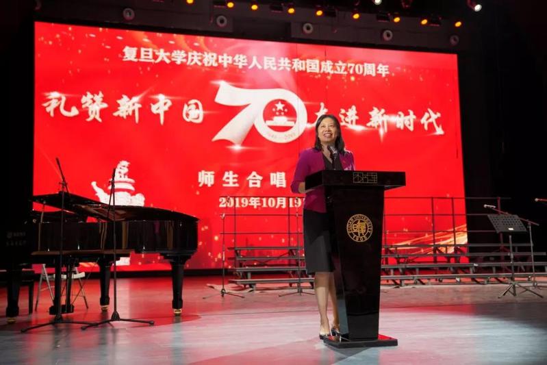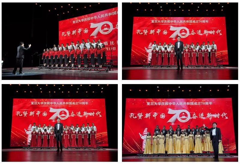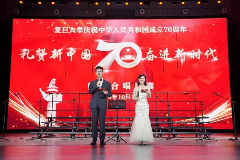 10月19日,“礼赞新中国,奋进新时代”——复旦大学师生庆祝中华人民共和国成立70周年合唱比赛在相辉堂北堂举行。校党委副书记许征、尹冬梅出席并分别在大合唱比赛、小合唱比赛致辞,全校各院系、部处以及附属单位的党政领导、教职工及学生代表一同参与此次活动。