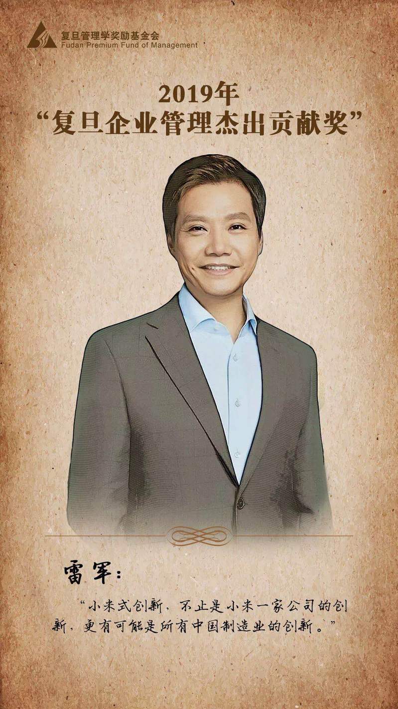 今年,复旦企业管理杰出贡献奖授予雷军。雷军先生领导的小米公司始终坚持做“感动人心、价格厚道”的好产品,以“硬件+新零售+互联网服务”的商业模式,致力让用户都能享受科技带来的美好生活。他领导小米公司首创了用互联网思维构建手机生态系统,利用互联网的效率和用户体验推进了智能手机在中国的快速普及和品质提升,从而推动了我国移动互联网产业发展,带动了传统制造业转型升级。基于独特的“生态链模式”,雷军通过小米投资带动一大批双创领导者共同创造了数字化时代商业效率新典范。