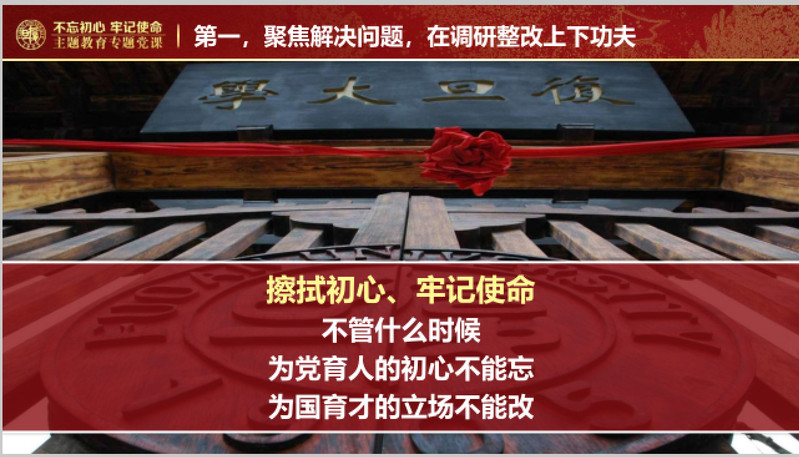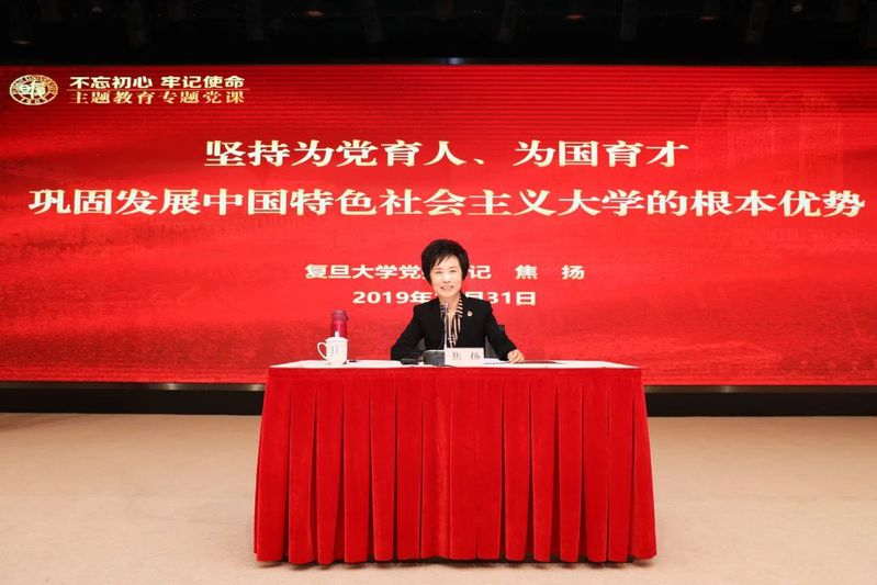 根据中央主题教育要求和学校工作安排,当天上午,焦扬用三个小时的时间,以“坚持为党育人、为国育才,巩固发展中国特色社会主义大学根本优势”为主题,从“牢记初心使命、永葆根本优势”,“对照初心使命、落实根本任务”,“践行初心使命、担当根本责任”三个方面,为800多位复旦党员干部讲授了一堂精彩而又深刻的主题教育专题党课。