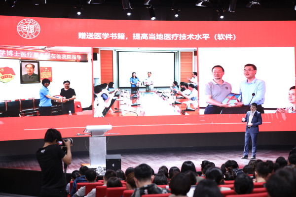 附属中山医院2017级博士生伍思霖同学以“行走在大山深处的白衣天使”为题分享了复旦大学博士生医疗服务团暑期社会实践活动经历。暑假期间,他们前往湖南中部贫困地区娄底冷水江、陕西宝鸡和甘肃平凉进行对口医疗帮扶实践活动。在到达实践地开展医疗活动过程中,他们发现医院设备老化破旧、检验检查技术水平低等等问题,并积极思考解决之道。伍思霖表示,他们在实践过程中获得了专业能力的提升,也感受到了“医者仁心大医精诚”的精神。“这次社会实践是一趟重返医学初心之路,深入基层一线,群策群力为当地医疗卫生发展贡献力量,不断提醒着我们坚守为人民健康事业奉献终身的初心。”