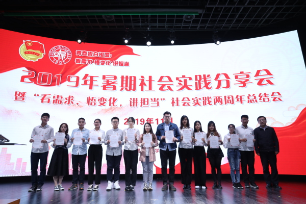 会议表彰了暑期社会实践十佳项目。师生代表从“看需求,扎根中国大地”、“悟变化,感受奋斗力量”、“讲担当,肩负时代责任”三个板块分享实践过程和体会心得。