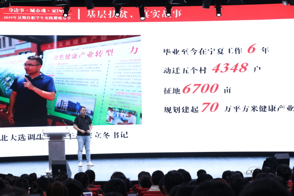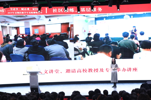 来自基础医学院的本科生江翘楚同学和来自哲学学院的博士生周扬洋同学以“身边事、城市魂、家国情”为主题分享了他们暑期在五角场街道和宁夏挂职时的见闻感悟。江翘楚同学挂职的岗位是五角场街道睦邻中心,挂职过程中,他充分发挥自己的医学学科优势,将专业的医学知识带到社区,开展了复旦大学“中风120 脑卒中识别教育”,并积极科普医学知识,担当起社区建设者的责任。周扬洋同学讲述了奋斗在扶贫攻坚前线的扶贫干部不慕名利、踏实付出的事迹,在挂职前,他对未来充满困惑和焦虑,但挂职结束后,他找到了人生答案,要选择为祖国和人民工作这样一条值得长期奋斗的路,并呼吁青年同学要把个人发展同国家发展相结合起来。