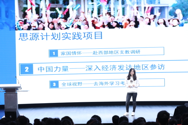 “思源计划”六期的学员、管理学院本科生王琪进行了“深入大湾区,感受中国脉搏”主题的分享。“每年暑假,思源计划”团队成员都在家国情怀、中国力量和国际视野三个主题指导下分别去往西部支教、经济发达地区参访、海外学习考察。今年,她随思源计划六期团队前往粤港澳大湾区参访19家企业、机构,并着眼于高新投等金融服务机构促进深圳技术发展、我国本土企业科达利在国际占据技术主动权、我国积极探索在互联网空间内处理涉诉涉法案件三个视角,认识了大湾区发展的历程,也重温了改革开放以来中国的成长轨迹。她表示,此次参访让她认识到,在新时代,治理体系与制度规则的创新已成为当代青年探索的新方向,把握国际竞争的话语权、为世界治理供给中国方案也成为当代青年的新使命。