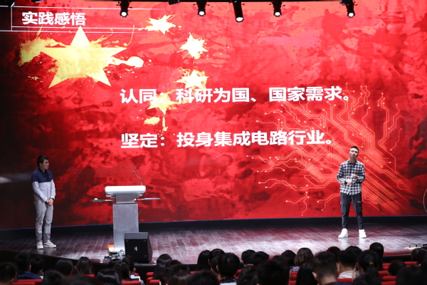 微电子学院专业硕士谢文昭和材料科学系专业硕士付兴柱同学以“中国芯动力”为题进行了分享。暑期,他们在集成电路行业实习,谢文昭在复旦微电子集团公司做前端设计,付兴柱在安集微电子做后端制造,在实习过程中,他们接触了业界主流的设计方法、研发流程,见识到了产业界的团队协作方式,锻炼了专业能力,也感受到我国和先进国家仍有差距。他们表示,工科学子应该去了解国家和社会的需求,引导自身做更加有用的科研,立志为中国的核心技术奉献自己的力量。
