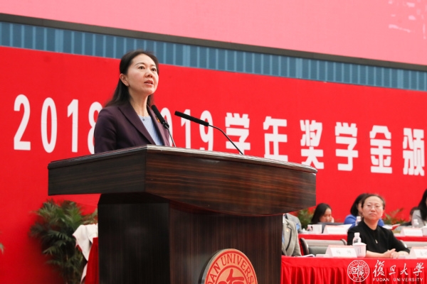 尹冬梅在讲话中向所有获得本年度各项奖学金荣誉的同学表示热烈祝贺,向勤勉育人的各位老师表示诚挚敬意,向长期鼎力支持学校事业发展的单位和个人表示由衷感谢。围绕“践行初心和使命,为报国成才而奋斗”,她强调,复旦人不忘初心、牢记使命,就是要争做热爱祖国、忠于人民的表率,开拓创新、锐意进取的表率,顽强拼搏、不懈奋斗的表率。她勉励同学们勇于砥砺奋进,把对卓越的渴求化为自身前进的动力,在奋斗中实现更高层次的精神追求、更有意义的生活方式、更大价值的人生取向。